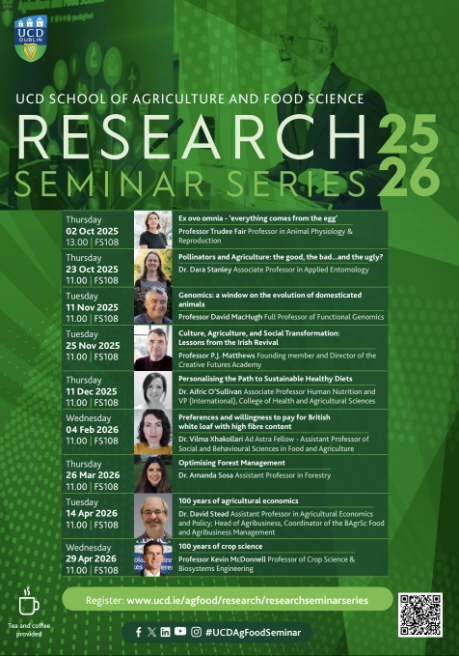 Recordings of each seminar are will be available on our UCD AgFood YouTube Channel available to watch on-demand.