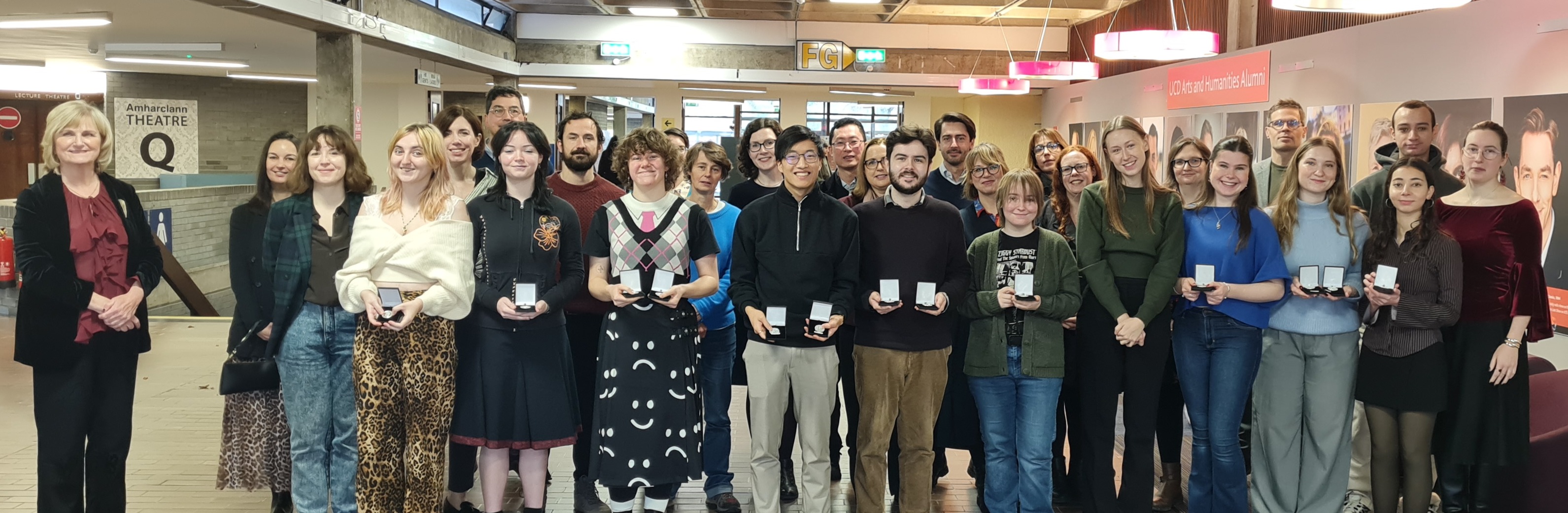 Congratulations to all Arts and Humanities BA Joint Honours students who received a Patrick Semple Medal for their top-performing results in the 2024/2025 academic year. Professor Regina Uí Chollatáin, Principal and Dean, College of Arts and Humanities welcomed the winners along with staff and faculty from across the College for the medal presentation. The UCD Semple medal was established in 1993 to honour Professor Patrick Semple who was the 1st Dean of the Faculty of UCD Arts from 1909 -1948. The medal recipients by subject, who received the highest GPA in BA Joint Honours subjects, are as follows, by School: