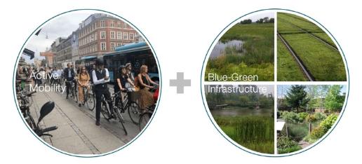 Figure 1: Representation of active mobility and Blue-Green infrastructure