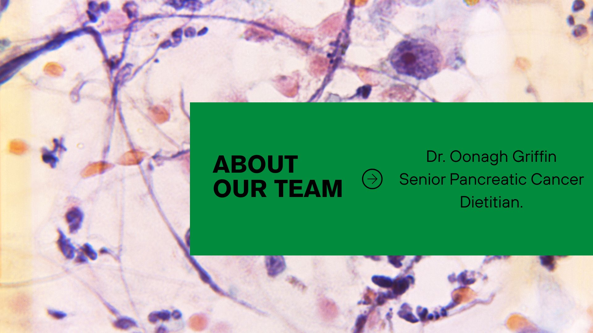 Dr. Oonagh Griffin is a Senior Pancreatic Cancer Dietitian at St. Vincent’s University Hospital (SVUH) in Dublin, Ireland. She has been leading the specialist dietetic service for pancreatic cancer patients at the National Surgical Centre for Pancreatic Cancer since 2011.