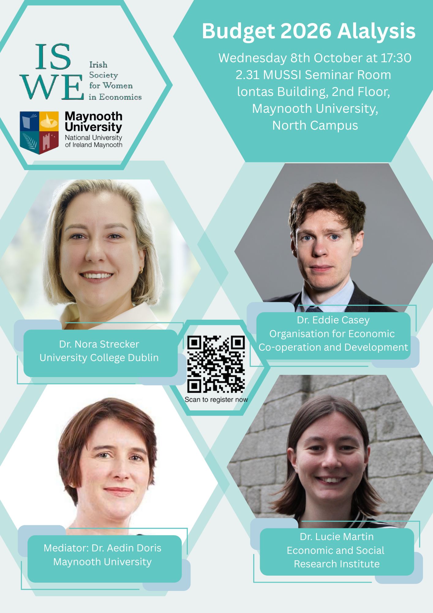 We are proud that University College Dublin staff and alumni will play a central role in this year’s Irish Society for Women in Economics (ISWE) Annual Post-Budget Analysis, hosted by Maynooth University on October 8th at 17.30.