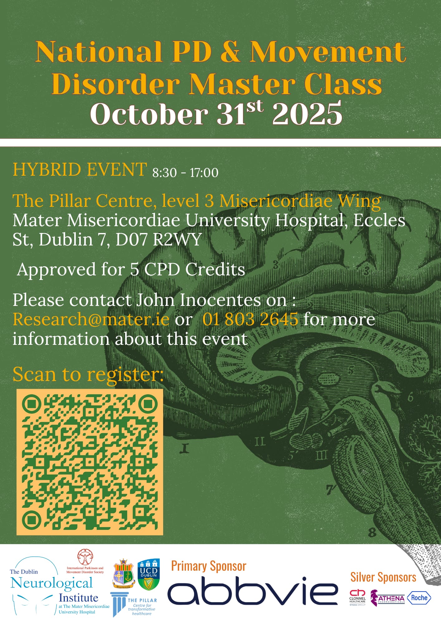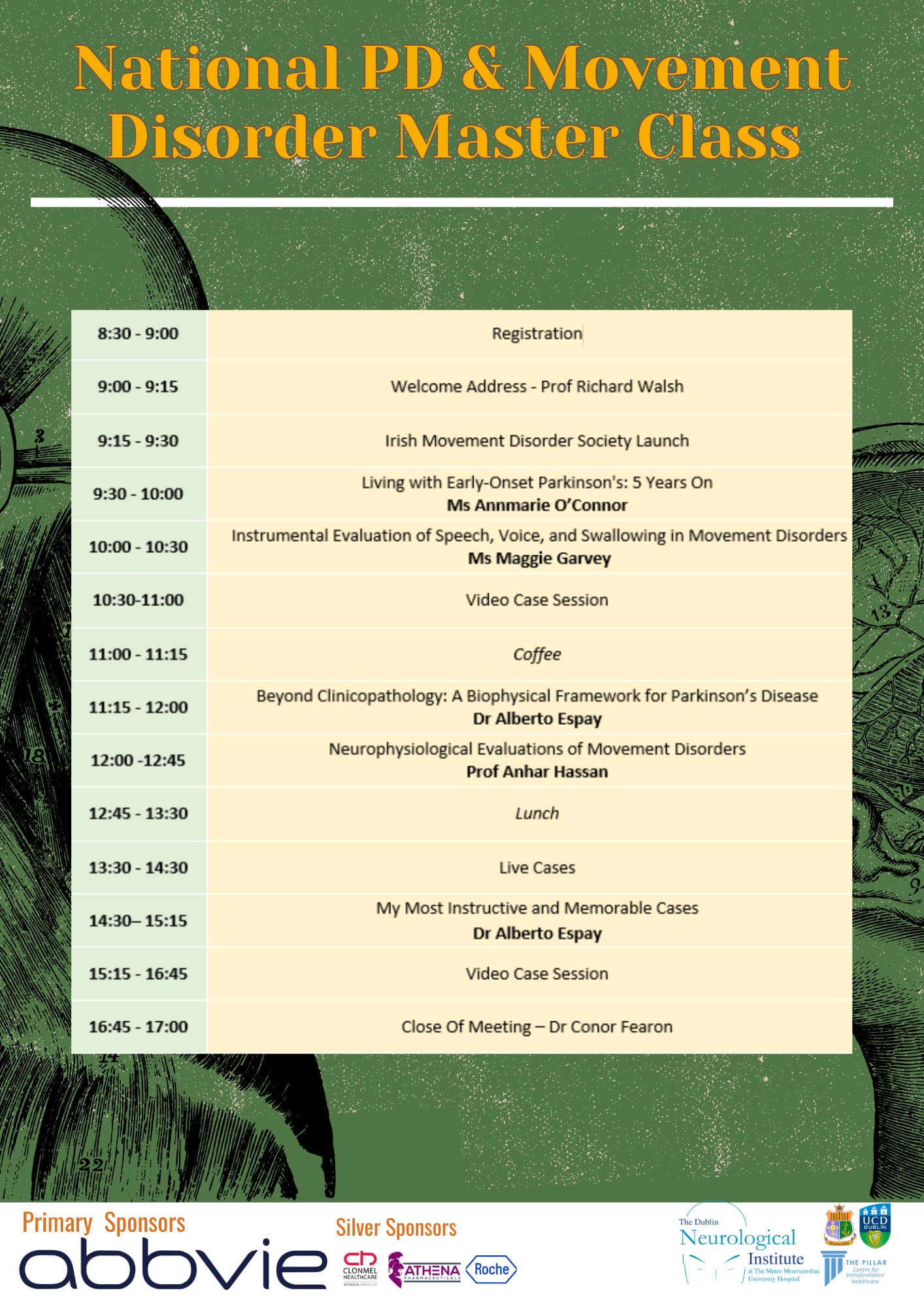 The annual National Parkinson’s disease and Other Movement Disorders meeting takes place at the Mater hospital on Friday October 31st. This is an excellent teaching and scientific meeting for medics, nurses, HSCPs and neuroscientists. Prof Alberto Aspay, a world leader in neurology, will speak but also partake in Grand Rounds (two patients attend) and interactive video sessions of complex neurology and movement disorders. It’s an excellent academic meeting with wonderful teaching about how to approach, diagnose and treat neurological problems. I encourage those with an interest in Parkinson’s disease and other movement disorders to attend.
