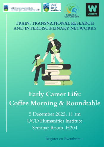 The UCD Humanities Institute and the UCD Earth Institute are pleased to invite you to the final in-person event of the ReCLAIM project TRAIN: Transnational Research and Interdisciplinary Networks |Early Career Life: Coffee Morning & Roundtable.