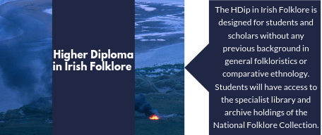 The HDip in Irish Folklore should provide students with the requisite skills, knowledge and experience to enable them to formulate and complete their own research projects in the field of folklore studies