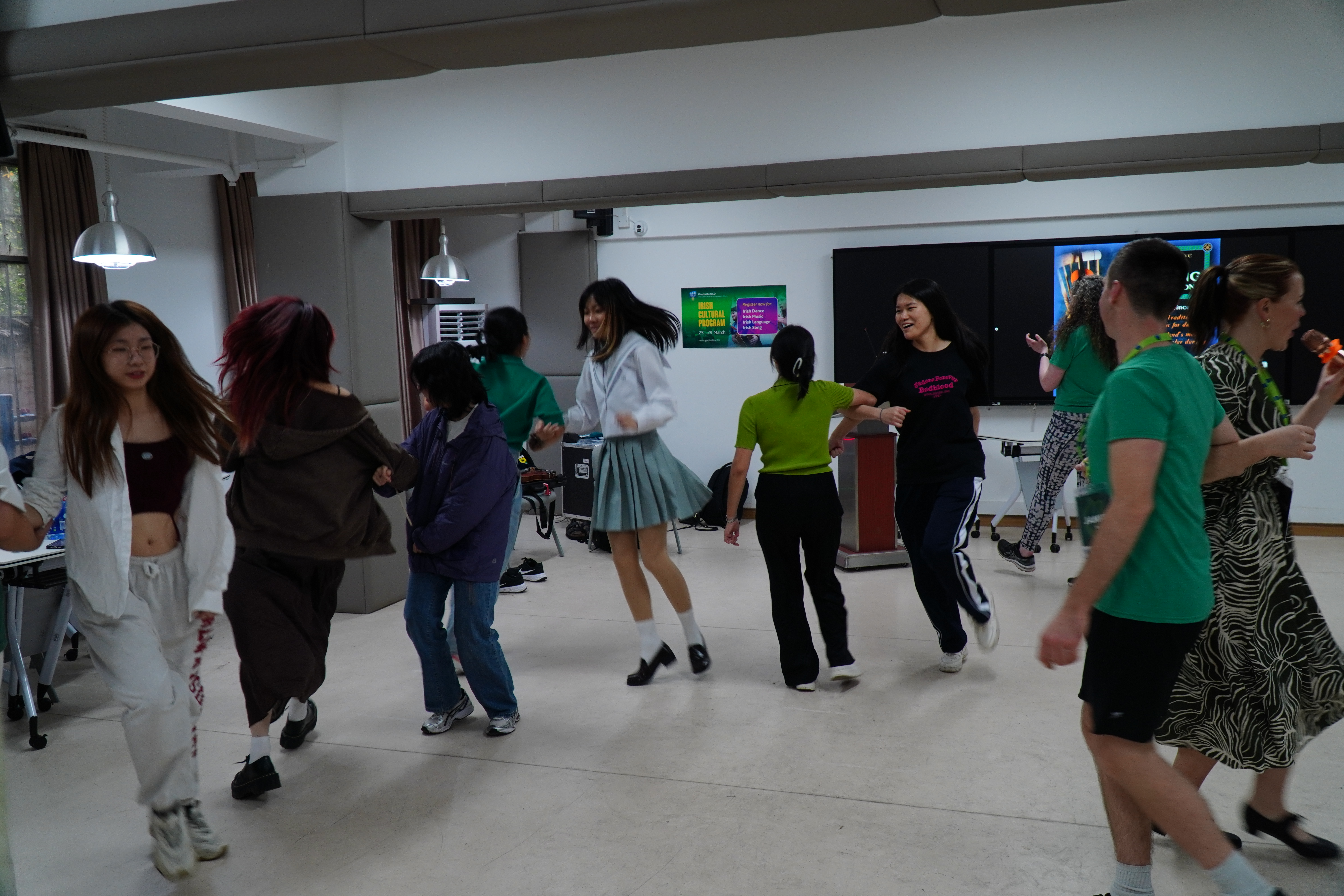 Chun tosaigh sa lár: Aisling Sheerin, teagascóir le Gaeltacht UCD, Clár Ní Bhuachalla, Stiúrthóir Ghaeltacht UCD agus Beini Chen, Scoil na hInnealtóireachta Sibhialta UCD