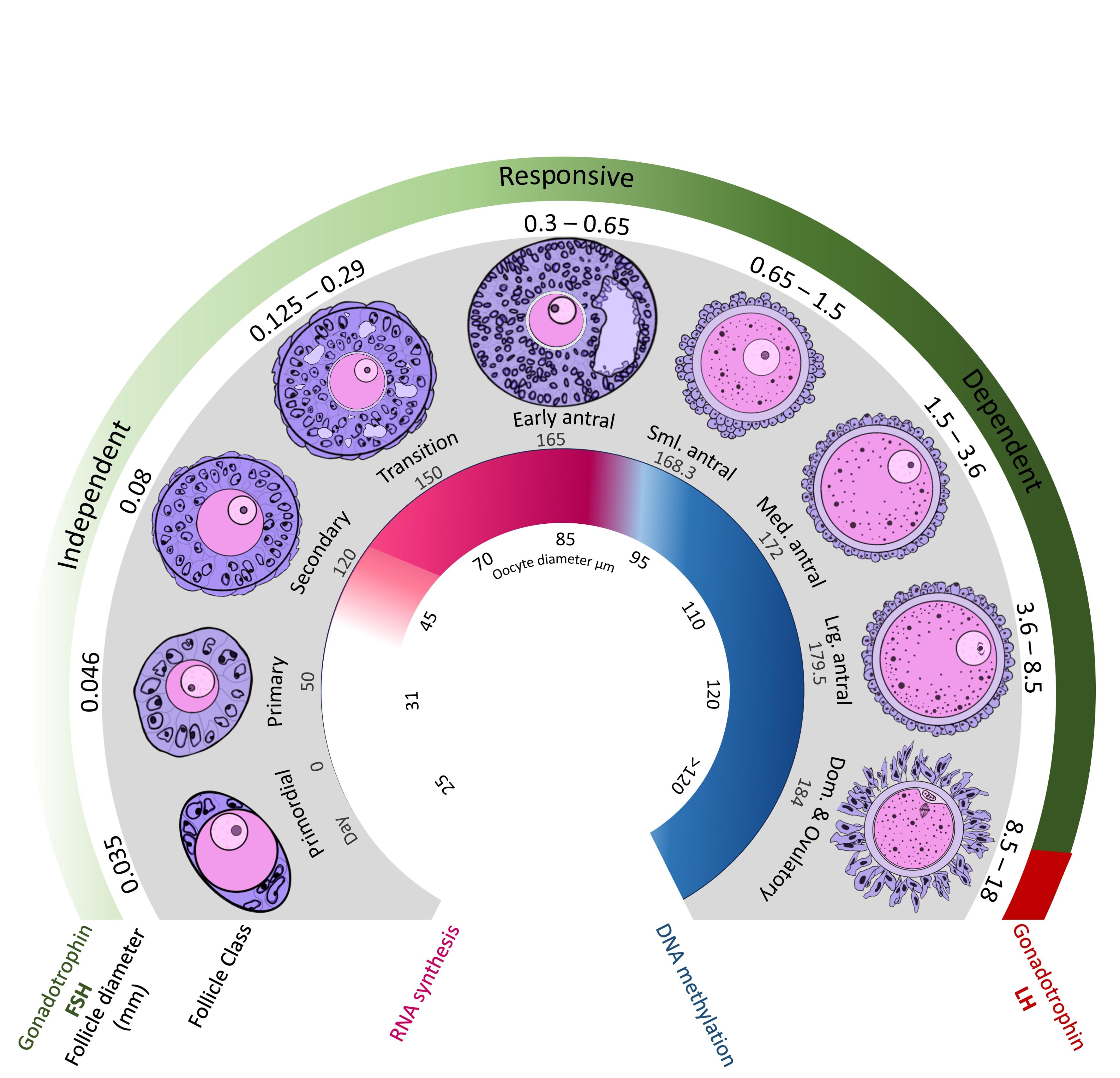 Pic: Schematic diagram depicting oocyte growth and follicle classification in cattle. (opens in a new window)doi: 10.1071/RD23164