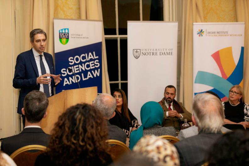 The event was launched at the Museum of Literature Ireland in Newman House with a keynote panel discussion between former President of Ireland Dr. Mary McAleese and UK Shadow Minister for Crime Reduction Naz Shah MP, as well as speeches from Minister Simon Harris and Acting UCD President Mark Rogers.