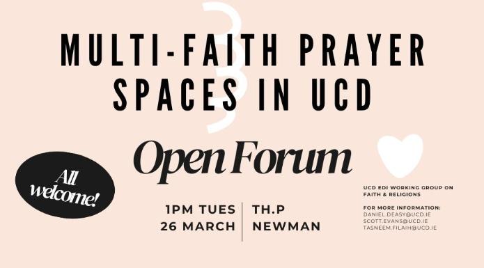 UCD’s large international student cohort, which includes a significant number of Muslim and Hindu students, as well as students from other non-Christian faiths.