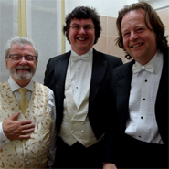 Pictured far right: Sir James Galway, Desmond Earley (UCD), and Gernot Süssmuth (Konzertmeister EUCO) in Aosta, Italy performing with the European Union Chamber Orchestra (April 2009)
