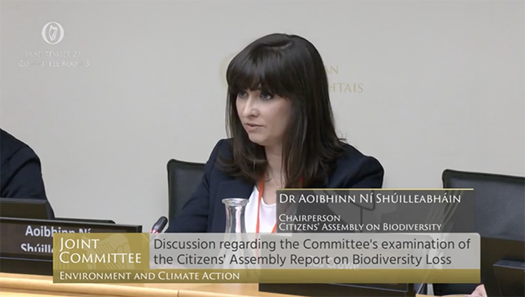 Appearing before the Oireachtas Joint Committee on Environment and Climate Action,(opens in a new window)Dr Aoibhinn Ní Shúilleabháin said that a “recurring theme across the work” of the Citizens' Assembly on Biodiversity Loss was “the failure of the State to implement its own laws with regards to Nature”.