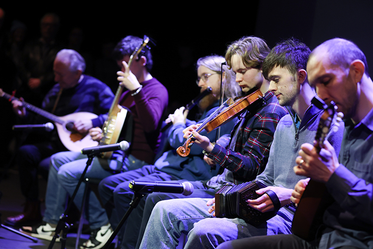 At the launch Irish folk musician Donal Lunny performed alongside Dr Peter Moran and Traditional Music Practices students from UCD School of Music Photo: Kenneth O'Halloran