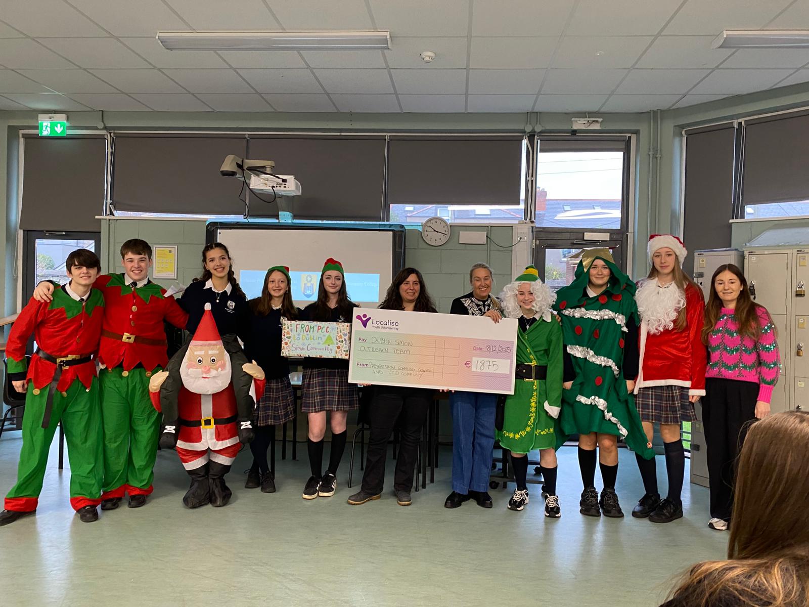 Together with the Transition Year students from Presentation College Terenure, as part of their Localise Youth volunteering programme, €1,875 worth of vouchers were donated to the appeal. The vouchers, along with handmade Christmas cards created by the students, were handed over to the Dublin Simon Community Outreach Team on 18 December 2025.