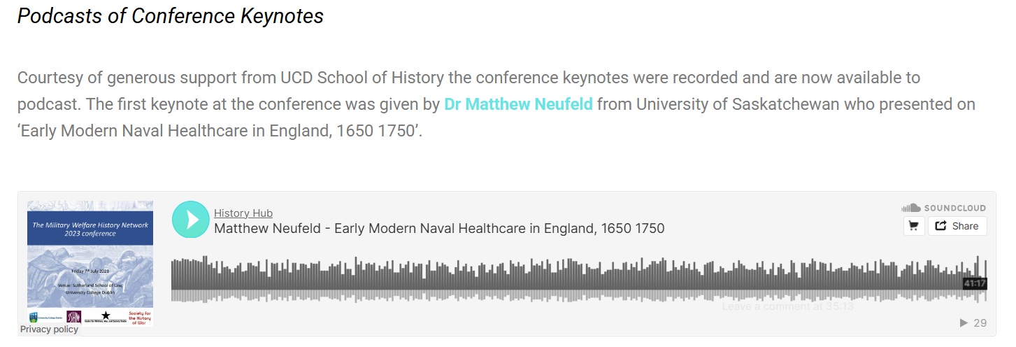 Several keynotes from these events were also recorded and can be listened to via the UCD HistoryHub podcast (opens in a new window)here.